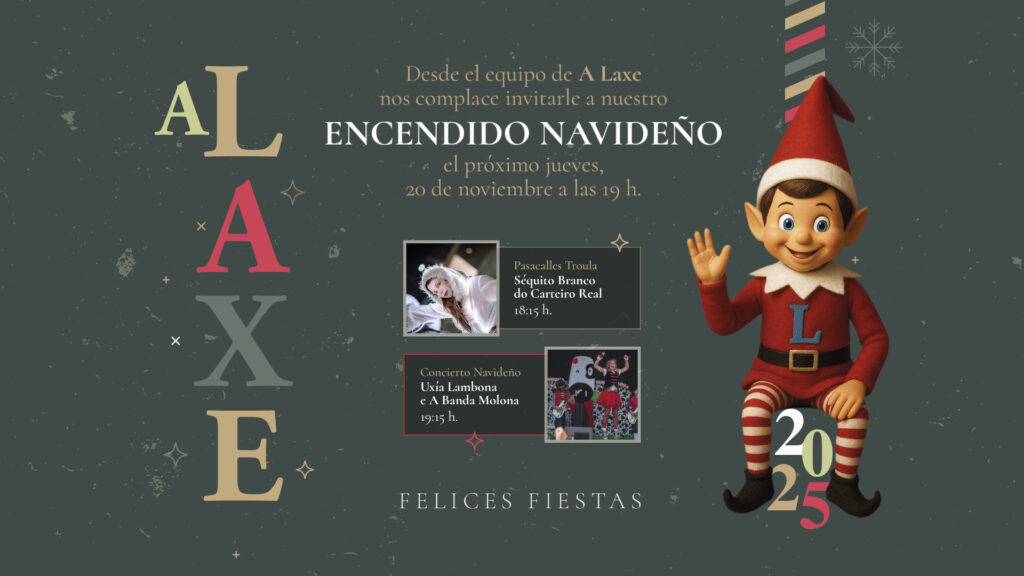 En A Laxe damos oficialmente la bienvenida a la época más mágica del año. El próximo jueves, 20 de noviembre a las 19:00 h, celebraremos nuestro Encendido Navideño, un evento especial pensado para disfrutar en familia, con música, espectáculo e ilusión para todas las edades. Antes del encendido, a las 18:15 h, recibiremos al Pasacalles […]
